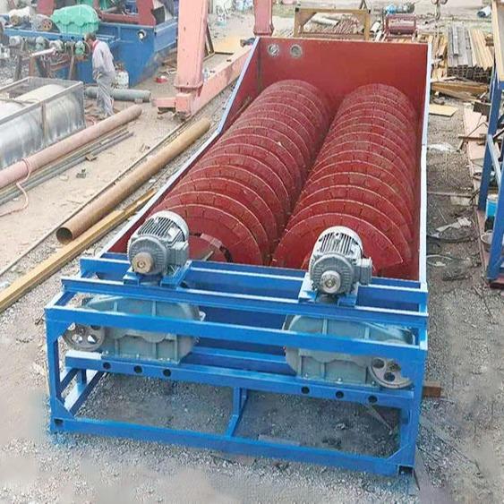 Screw sand washing is to form precipitation in the lower part of inclined water tank and screw is submerged in its front part in precipitation pond. Screw is driven by motor through speed reducer. Three functions of washing, dewatering and classification of material are accomplished by supplying clean water from porous plate at the bottom of precipitation tank.